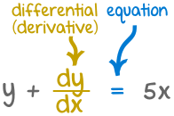 A Differential Equation is an equation with a function and one or more of itsderivatives: