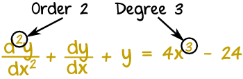 The degree is the exponent of the highest derivative.